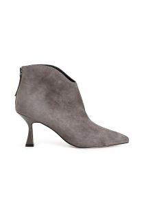 Botín de mujer de ante con tacón alto de 80 mm y forma esbelta. la plantilla es de piel.