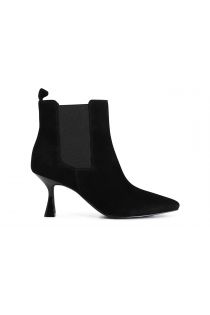 Botín de mujer de ante con tacón alto de 80 mm y forma esbelta. elásticos laterales para facilitar el ajuste. la plantilla es de piel.