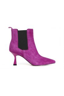 Botín de mujer de ante con tacón alto de 80 mm y forma esbelta. elásticos laterales para facilitar el ajuste. la plantilla es de piel.