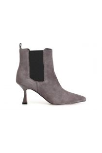 Botín de mujer de ante con tacón alto de 80 mm y forma esbelta. elásticos laterales para facilitar el ajuste. la plantilla es de piel.