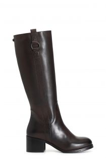 Bota de piel para mujer con accesorio de anilla en la caña. el tacón mide 50 mm de alto. la plantilla es de piel.