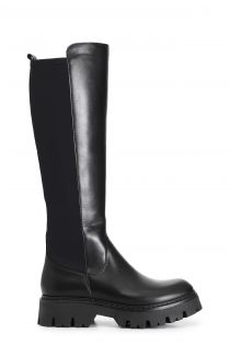 Bota de mujer fabricada en piel y tejido elástico para un look superatrevido. la plantilla es de piel. un modelo versátil y dinámico ideal para completar muchos conjuntos.