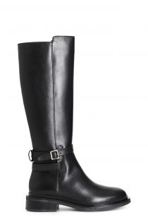 Bota de mujer de piel con tobillera y hebilla. el tacón tiene 30 mm de altura.