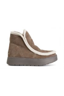 bota de tobillo con detalle de mocasín y pelo sintético taupe