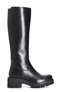 Bota de mujer de piel con elástico en la parte trasera. tacón de 50 mm de altura. la plantilla es de piel.