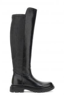 Bota de piel negra con puntera cuadrada, suela dentada, plantilla de piel y tacón de 3,5 cm. Un diseño limpio para un estilo urbano y contemporáneo.