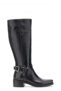 Botas de piel con espuelas laterales y correa. Plantilla de piel para mayor comodidad. Tacón de 45 cm para un estilo atrevido y un diseño contemporáneo.