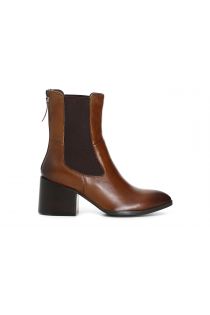 Botines de piel con tacón medio. Banda elástica lateral para facilitar el ajuste y cremallera en parte posterior.
