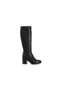 botas de piel con hebilla en el tobillo y tacón medio