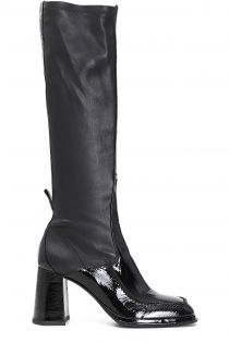 Botas de piel naplack y material elástico, forma cuadrada, tacón medio alto