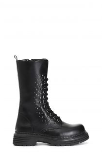 Botines alta de mujer con cordones en piel sintética adornada con tachuelas de moda.