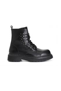 Botín de mujer con cordones de piel sintética adornado con modernas tachuelas.