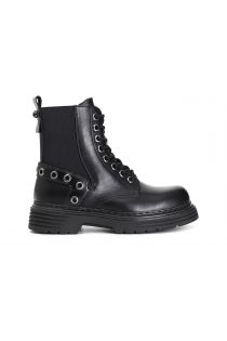 botín atado en piel sintética con elástico y ojales black