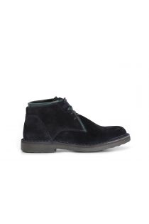 Botín de hombre de ante con cordones y apliques de piel. parte superior cosida a la suela. plantilla de piel.