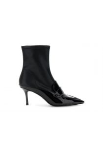 Botines de napa y charol con empeine estilo mocasín, inspirados en la elegancia atemporal de los bulevares parisinos. El tacón de aguja de 7,5 cm realza con gracia cada paso. Un poema urbano.