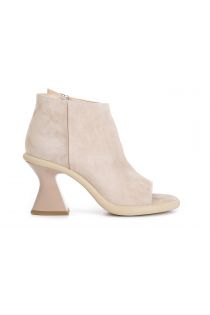 Botines con plataforma de 15 mm en ante con forma asimétrica. punta abierta con una abertura lateral que deja al descubierto el interior del pie. plantilla de piel auténtica acolchada. tacón de carrete 70 mm de altura.