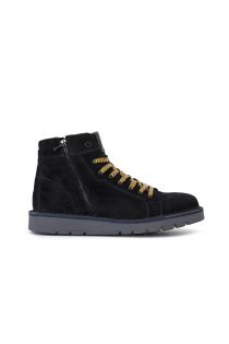 Botín de ante para hombre con cordones y cremallera decorativa.