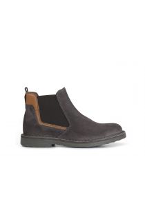Botín de ante para hombre con elástico lateral y apliques de piel. parte superior cosida a la suela. plantilla de piel.