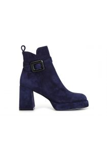 Botín de mujer de ante adornado con una elegante hebilla tacón de 80 mm y plataforma de 20 mm. la plantilla es de piel. comodidad y elegancia al mismo tiempo y un carácter único adecuado para cada atuendo.