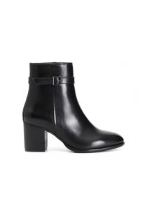 Botín de piel para mujer con cinturón en el tobillo y hebilla. el tacón mide 65 mm. cómoda plantilla de piel.