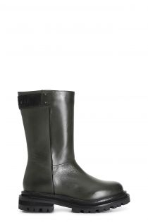 Botines de piel para mujer adornado con una distintiva cinta negra con el logotipo de cafènoir y modernas tachuelas. la plantilla es de piel.