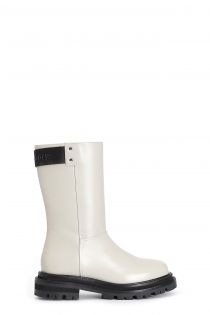 Botines de piel para mujer adornado con una distintiva cinta negra con el logotipo de cafènoir y modernas tachuelas. la plantilla es de piel.