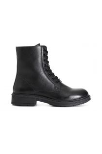 Botín de mujer de piel con cordones y tacón de 35 mm. la plantilla es de piel.