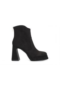 Botín de mujer en microfibra con cremallera en la parte trasera para facilitar su colocación. calzado en perfecto estilo setentero. el tacón alto de 95 mm junto con la plataforma de 18 mm proporcionan un equilibrio de altura belleza y comodidad.