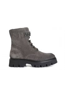 Botín con cordones en ante con complemento joya. cremallera en el interior. la plantilla es de piel. la suela tipo tanque en material extraligero estiliza el modelo y lo hace hiperactual.