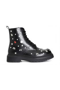 Botín de mujer con cordones decorado con tachuelas multiestampado. calzado perfecto para enriquecer tu outfit.