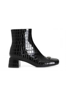 Botín con puntera redondeada efecto estampado cocodrilo con complemento personalizado. cremallera en el interior del zapato. tacón con banda de 45 mm de altura. la plantilla es de piel. ideal en combinación con múltiples looks desde la mañana hasta la noche.
