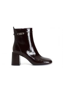 Botín de mujer en piel naplak con complemento personalizado. cremallera interna. tacón con banda de 80 mm de altura. la plantilla es de piel. ideal en combinación con múltiples looks desde la mañana hasta la noche.