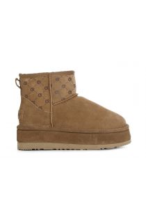 Botín de mujer en ante con decoración de logo. el forro y la plantilla son de pelo sintético. zapato calentito y muy cómodo. ideal para los fríos días de invierno.