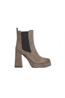 Botines de mujer en microfibra con elásticos laterales para facilitar su calce. plataforma de 22 mm y tacón de 100 mm. forma redondeada. la plantilla es de piel. todo esto da equilibrio entre altura belleza y comodidad.