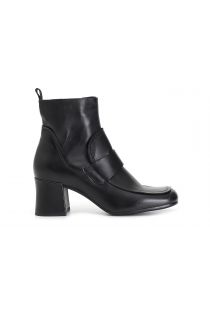 Botín de mujer en suave piel de napa con pespuntes ornamentales en el empeine. su gusto muy chic permite llevarlo con cualquier atuendo para cualquier ocasión cotidiana o nocturna. la punta y el talón son cuadrados.