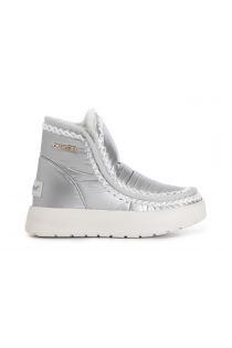 Botín de mujer de nailon con plataforma forro de imitación de pelo y logotipo metálico en la caña.