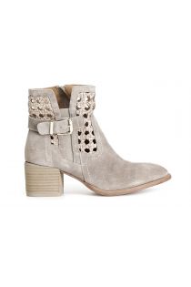Botín de piel de ante para mujer. caña perforada y cinturón lateral con hebilla. cremallera interior para facilitar el ajuste. suela de cuero auténtico. tacón de 55 mm. zapato muy versátil y cómodo perfecto para cualquier look.