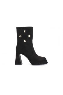 Botín de mujer de microfibra con cuatro tachuelas hexagonales. un zapato perfecto de estilo setentero el tacón de 95 mm junto con la plataforma de 18 mm son una mezcla perfecta de altura belleza y comodidad.