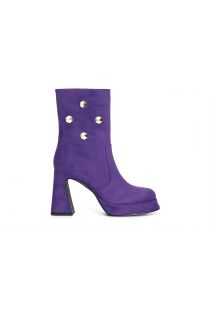 Botín de mujer de microfibra con cuatro tachuelas hexagonales. un zapato perfecto de estilo setentero el tacón de 95 mm junto con la plataforma de 18 mm son una mezcla perfecta de altura belleza y comodidad.