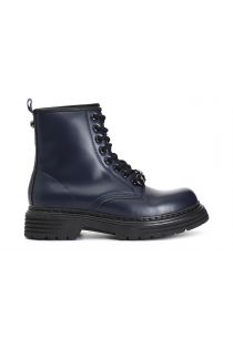 Botín de mujer con cordones en piel sintética con efecto cepillado. el accesorio situado en la base del cordón contribuye a aumentar el estilo del zapato.