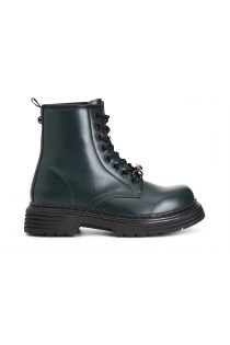 Botín de mujer con cordones en piel sintética con efecto cepillado. el accesorio situado en la base del cordón contribuye a aumentar el estilo del zapato.