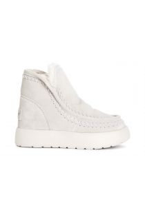 Botín de mujer con suela elevada. parte superior de ante y forro de piel sintética.