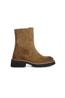 Botín de ante con elástico recubierto de tachuela personalizada. tacón de 50 mm de altura. la plantilla es de piel.