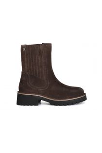 Botín de ante con elástico recubierto de tachuela personalizada. tacón de 50 mm de altura. la plantilla es de piel.