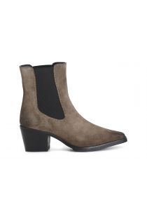 Botín de ante con elásticos laterales. cremallera en el interior. tacón de 55 mm de altura. la plantilla es de piel. un zapato de estilo tejano y con carácter atrevido que garantizará un toque extra a tus looks.