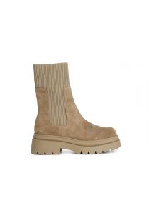 Botín de mujer en ante y pala efecto calcetín en tejido elástico para facilitar el calce. tacón de 55 mm de altura. la plantilla es de piel.