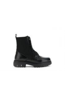 botín mujer de piel abrochado con cordones elásticos y strass black