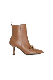 botín mujer de piel con accesorio y tacón 70 mm tan