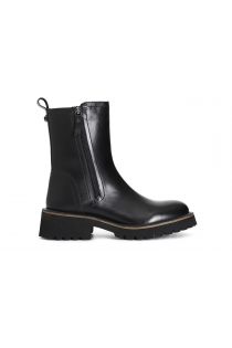botín mujer de piel con doble cremallera. black