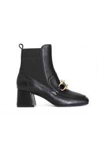 Botín mujer de piel con elástico y complemento. tacón grueso de 60 mm de altura. la plantilla es de piel.